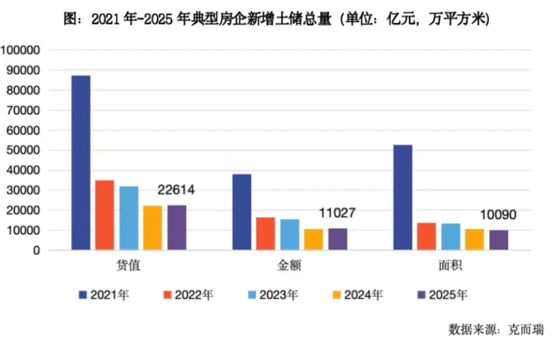 根据报告,2025年,重点监测的100家企业拿地新增货值、总价和建筑面积之和分别达到22614亿元、11027亿元和10090万平方米。其中,货值、金额同比分别增长2%和3%,建筑面积同比下降5%。